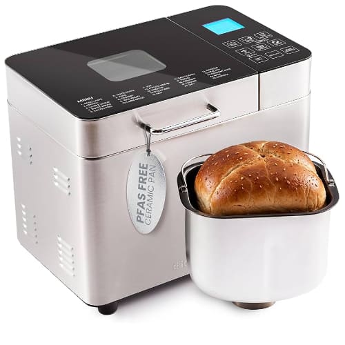 This highly-rated 2 lb programmable machine features 19 digital presets and a 15-hour delay timer, making it an ideal choice for beginners seeking a reliable, budget-friendly entry into home baking.